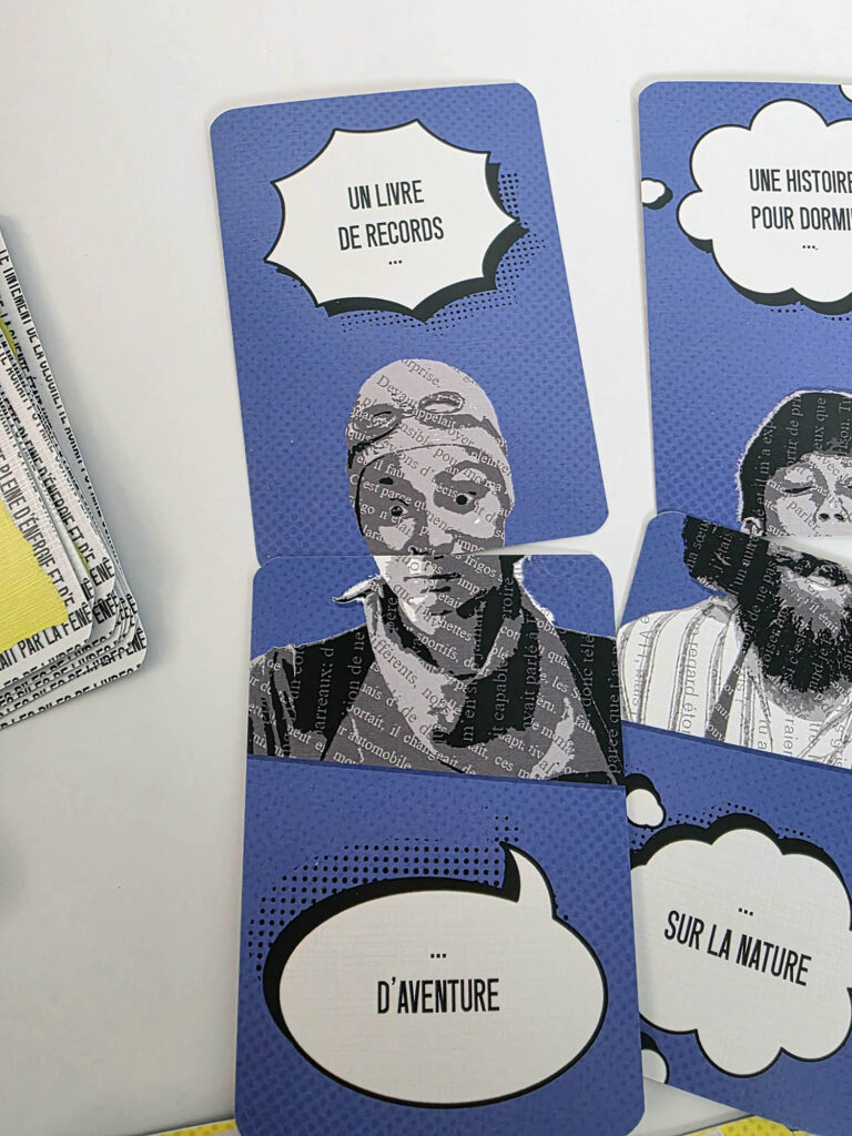 Le ton du jeu est volontairement léger, drôle et accessible. Il favorise les échanges, les rires et la créativité spontanée. Cette approche permet de valoriser le livre non pas comme un objet figé ou scolaire, mais comme une source de plaisir, d’inspiration et de jeu. C’est une manière très naturelle de faire rayonner la lecture dans des contextes où l’on souhaite rejoindre un public large.